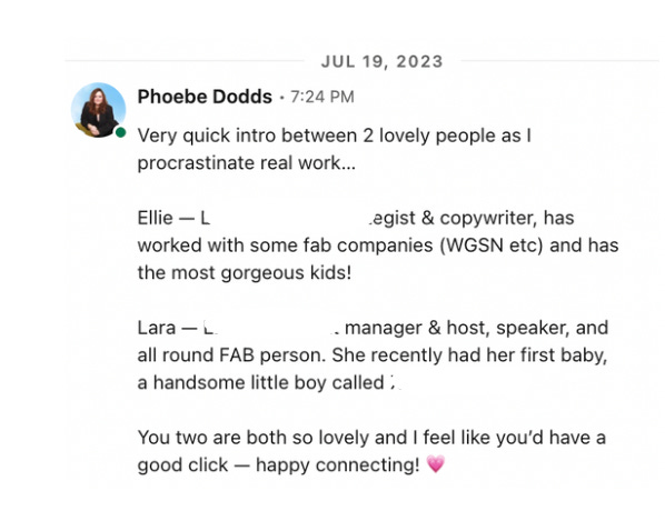 Really enjoying your new Substack Phoebe and absolutely loving the networking approach 🤩
